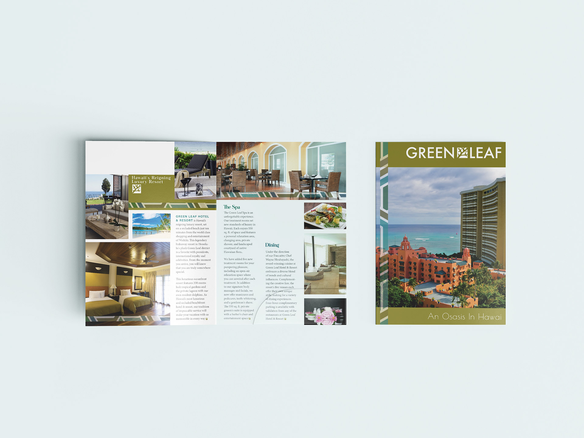 For this project I had to create a bi-fold brochure for a resort in Hawaii. The colors & design give it a modern, sleek, and sophisticated feel.